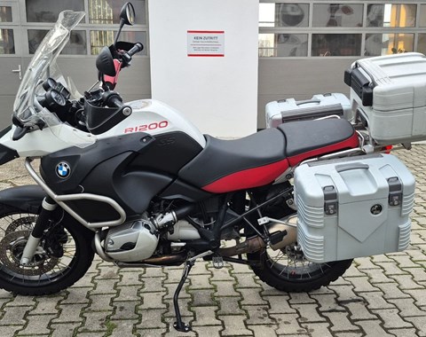 Zum Verkauf steht unsere BMW R 1200 GS Adventure mit Erstzulassung im März 2007. Das Fahrzeug aus erster Hand ist unfallfrei und befindet sich den Kilometern entsprechend in einem gepflegten Zustand. Es wurden alle 10.000km Inspektionen beim BMW Vetragshändler durchgeführt, die letzte Inspektion wurde 06/2024 bei ca. 59.000km erledigt. Die Reifen befinden sich nahe der Verschleißgrenze, werden aber zur Auslieferung je nach Kundenwunsch noch erneuert. Alle restlichen Verschleißteile befinden sich in gutem Zustand. Zudem machen wir zur Auslieferung noch eine neue Jahresinspektion mit Öl- und Bremsflüssigkeitswechsel. Das unten aufgeführte, hochwertige Zubehör ist im Fahrzeugpreis inbegriffen. Zu unseren Geschäftszeiten können Sie das Fahrzeug besichtigen und nach vorheriger Absprache auch Probefahren. Bei weiteren Fragen stehen wir gerne zur Verfügung.
