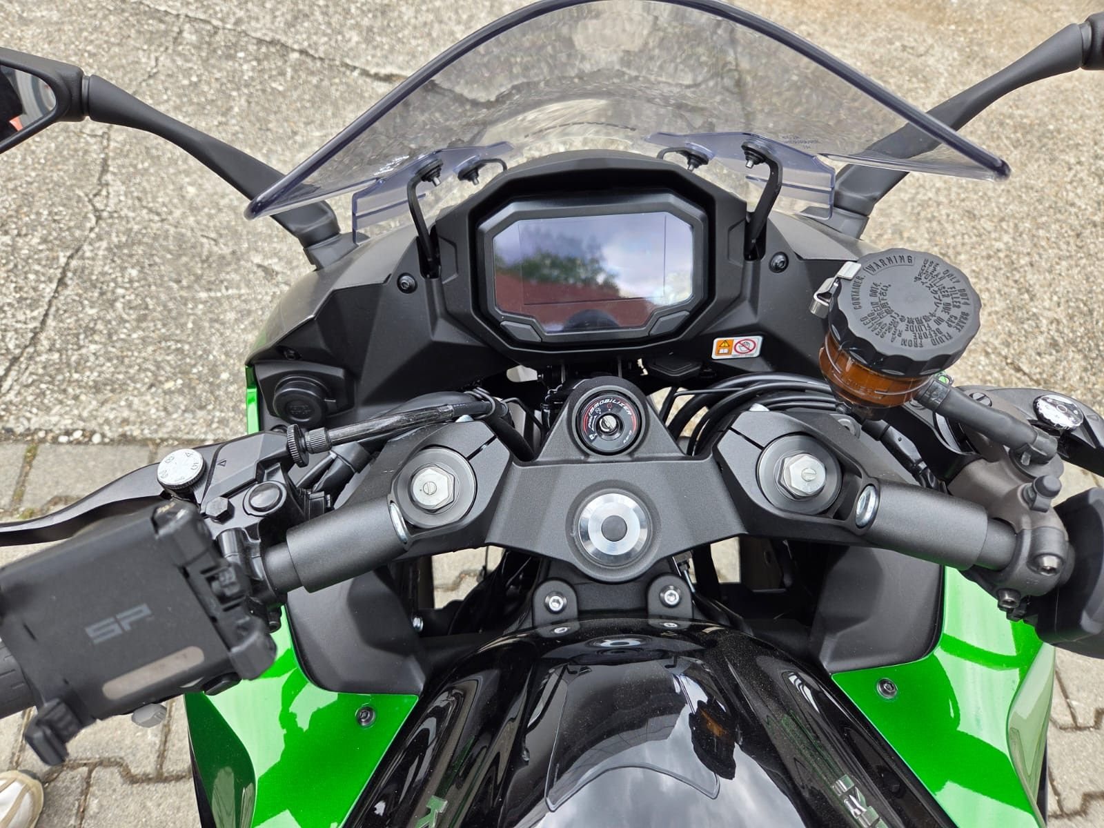 - Kawasaki Tourerpaket (Koffersystem 2x28 Liter inkl. Innentaschen, Handyhalterung, Heizgriffe, 12V Steckdose, Displayschutzfolie, großes Windschild-> aktuell nicht am Fahrzeug montiert aber im Preis inbegriffen)