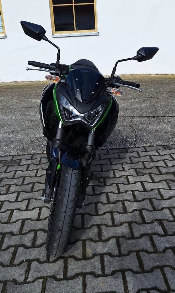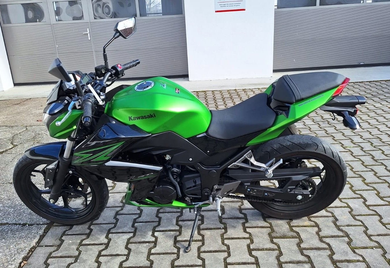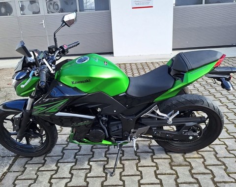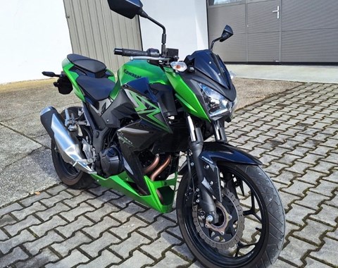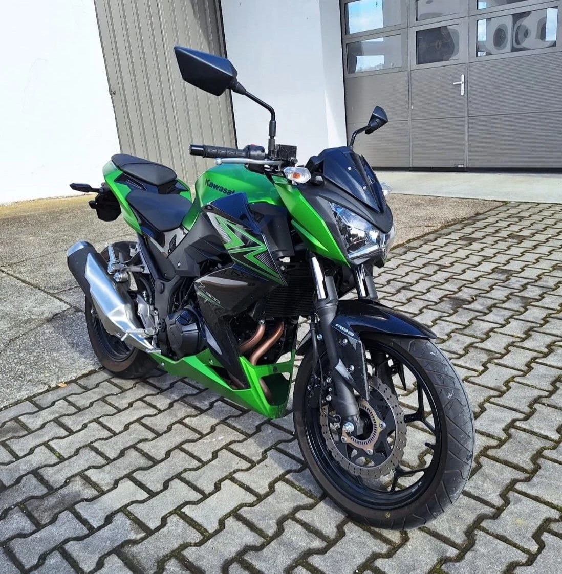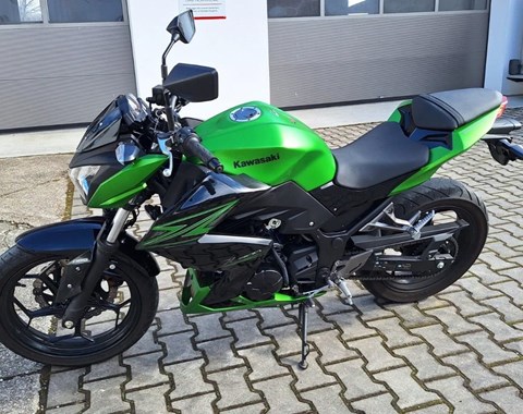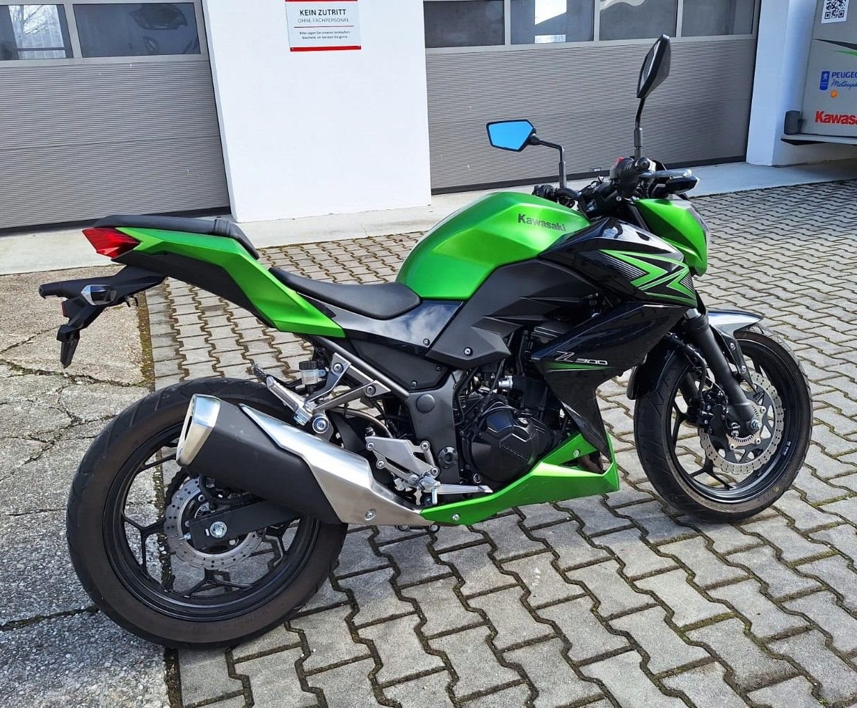 Zum Verkauf steht unsere Kawasaki Z300 mit Erstzulassung im April 2015. Das Fahrzeug aus erster Hand ist unfallfrei und befindet sich den Kilometern entsprechend in einem gepflegten Zustand. Die größere 12.000km Inspektion wurde bereits erledigt, zur Auslieferung machen wir noch eine neue Jahresinspektion mit Öl- und Bremsflüssigkeitswechsel. Beide Reifen sind zudem neu. Auch alle weiteren Verschleißteile befinden sich in gutem Zustand. Durch ein Umfaller nach rechts ist der rechte Bugspoiler verkratzt (Detailfotos können wir auf Wunsch zuschicken). Zu unserem Geschäftszeiten können Sie das Fahrzeug besichtigen und nach vorheriger Absprache auch Probefahren. Bei weiteren Fragen stehen wir gerne zur Verfügung.