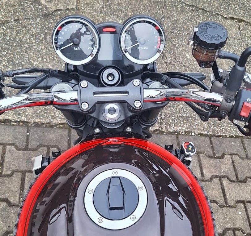 Zum Verkauf steht unsere Kawasaki Z 900 RS 50th Anniversary mit Erstzulassung im Mai 2022. Das Fahrzeug aus zweiter Hand ist unfallfrei und befindet sich den Kilometern entsprechend in einem sehr gepflegten Zustand. Die 1.000km Inspektion wurde beim Kawasaki Vertragshändler durchgeführt, zur Auslieferung erledigen wir noch die größere 12.000km Inspektion und machen die HU (TÜV) neu. Auch alle Verschleißteile befinden sich in gutem Zustand, der Vorderreifen wird zur Auslieferung ebenfalls erneuert. Die ursprünglich goldenen Felgen der 50th anniversary Edition hat der Vorbesitzer gegen schwarze Felgen ausgetauscht. Zu unseren Geschäftszeiten können Sie das Fahrzeug besichtigen und nach vorherhiger Absprache auch Probefahren. Bei weiteren Fragen stehen wir gerne zur Verfügung.