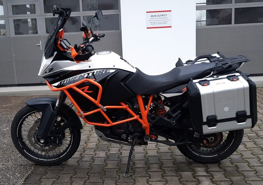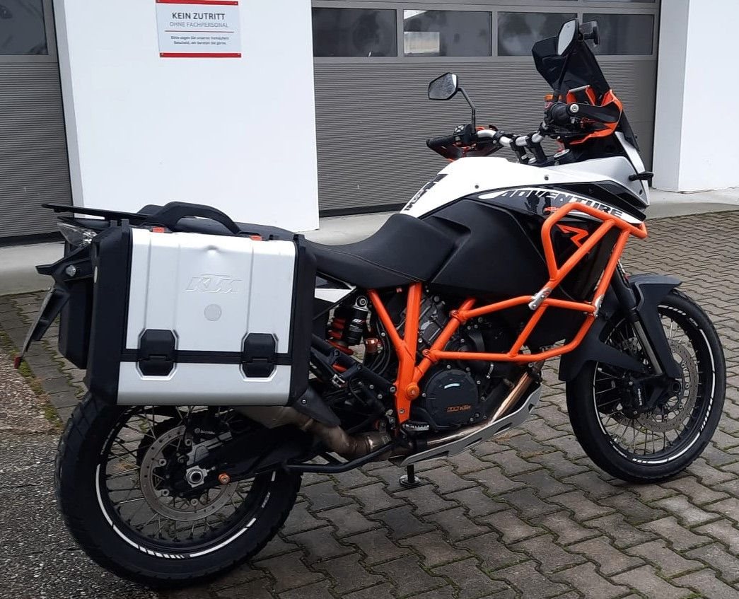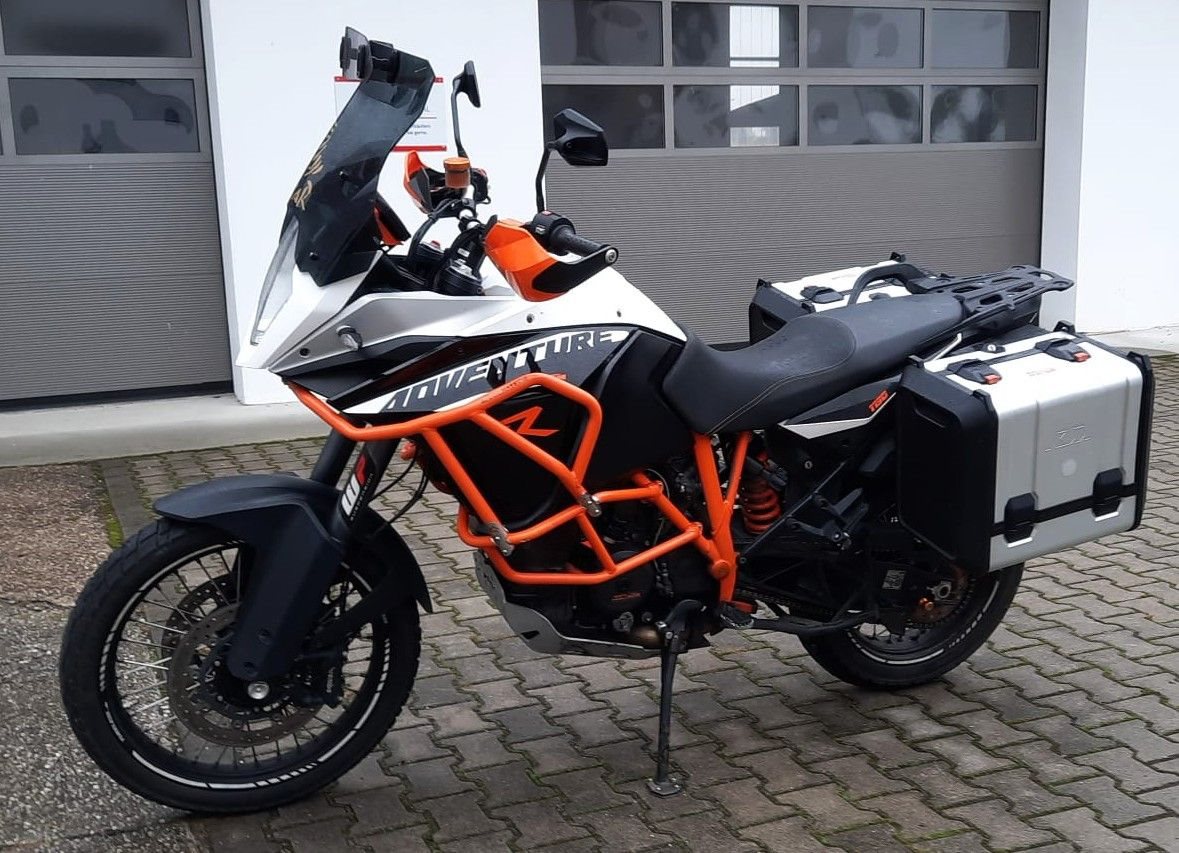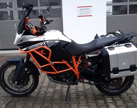 Zum Verkauf steht unsere KTM 1190 Adventure R mit Erstzulassung im Juli 2014. Das gepflegte Fahrzeug aus zweiter Hand ist unfallfrei und befindet sich den Kilometern entsprechend in einem sehr gepflegten Zustand. Alle Services wurden regelmäßig beim KTM Händler durchgeführt, auch die große 60.000km Inspektion wurde in unserer Vertragswerkstatt durchgeführt. Alle Verschleißteile befinden sich in gutem Zustand. Das unten aufgeführte, hochwertige Zubehör ist im Preis inbegriffen. Zu unseren Geschäftszeiten können Sie das Fahrzeug besichtigen und nach vorheriger Absprache auch Probefahren. Bei weiteren Fragen stehen wir gerne zur Verfügung .