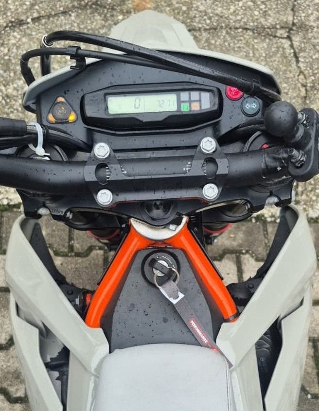 Zum Verkauf steht unsere KTM 690 SMC R mit Erstzulassung im März 2024. Das Fahrzeug aus erster Hand ist um- und unfallfrei und befindet sich in einem sehr gepflegten Zustand. Alle Inspektion wurden beim KTM Vertragshändler durchgeführt, dementsprechend ist die Garantie bis 02/2026 noch vorhanden und kann auch Wunsch auch nochmal verlängert werden. Auch alle Verschleißteile befinden sich in gutem Zustand. Die Drosselung für den A2 Führerschein ist möglich. Zu unseren Geschäftszeiten können Sie das Fahrzeug besichtigen und nach vorheriger Absprache auch Probefahren. Bei weiteren Fragen stehen wir gerne zur Verfügung