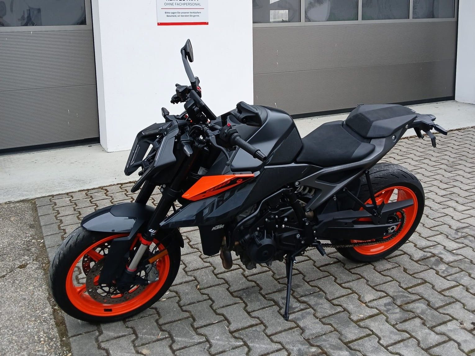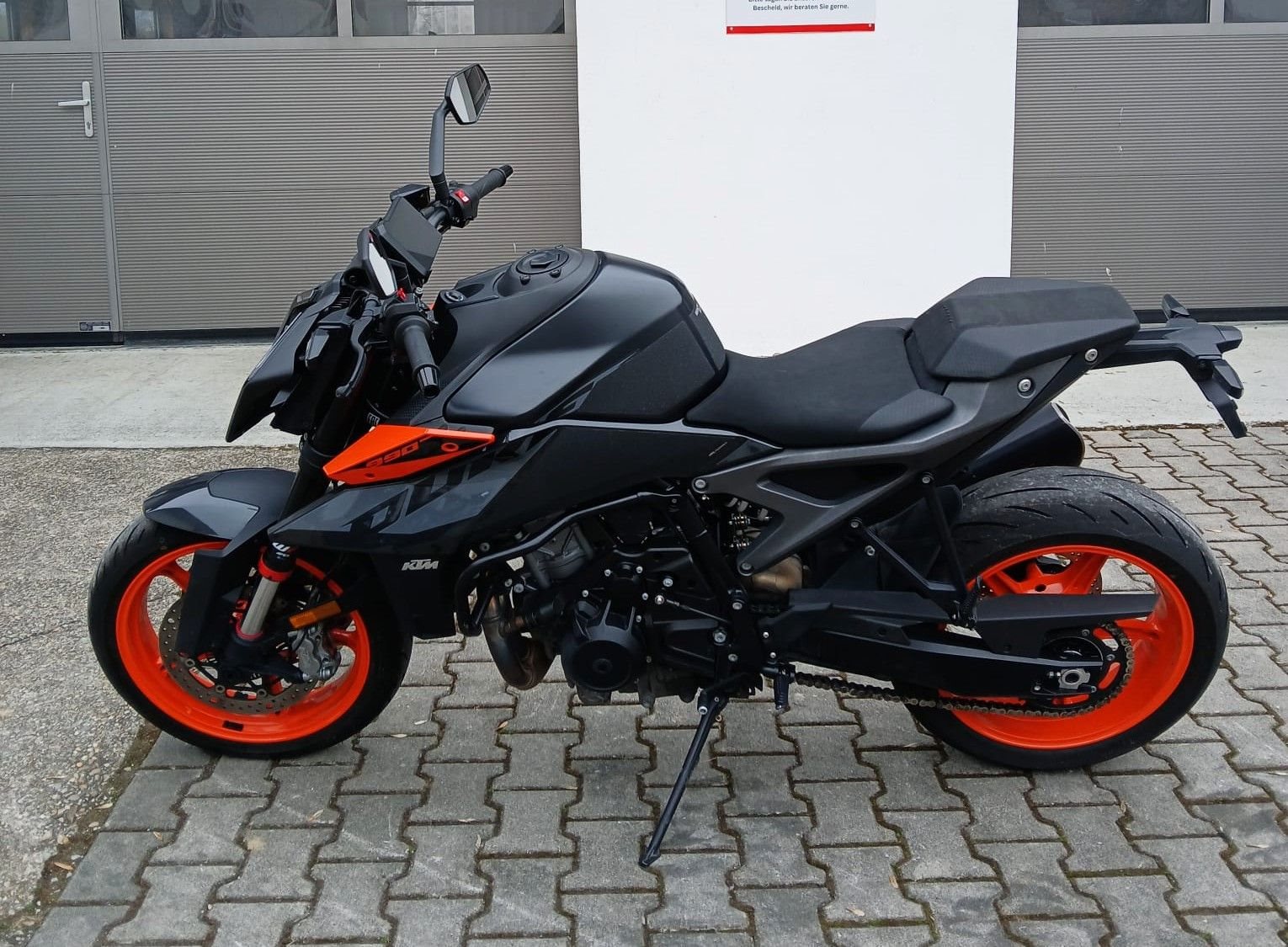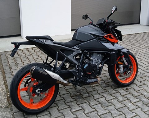 Zum Verkauf steht unsere KTM 990 Duke mit Erstzulassung im März 2024. Das Fahrzeug aus erster Hand (Fahrschul-Begleitfahrzeug) ist unfallfrei und befindet sich den Kilometern entsprechend in einem gepflegten Zustand. Alle Inspektion wurde beim KTM Vertragswerkstatt durchgeführt, die Fahrzeuggarantie läuft noch bis 03/2028. Zudem machen wir zur Auslieferung noch eine neue Jahresinspektion mit Öl- und Bremsflüssigkeitswechsel und die HU (TÜV) neu. Das unten aufgeführte, hochwertige Zubehör ist im Fahrzeugpreis inbegriffen. Das Motorrad ist 1x im Stand auf die linke Seite gefallen, dadurch ist der montierte Sturzbügel leicht verkratzt. Der Schaden kann aber problemlos ausgebessert werden. Auch alle Verschleißteile befinden sich in gutem Zustand. Zu unseren Geschäftszeiten können Sie das Fahrzeug besichtigen und nach vorheriger Absprache auch Probefahren. Bei weiteren Fragen stehen wir gerne zur Verfügung.