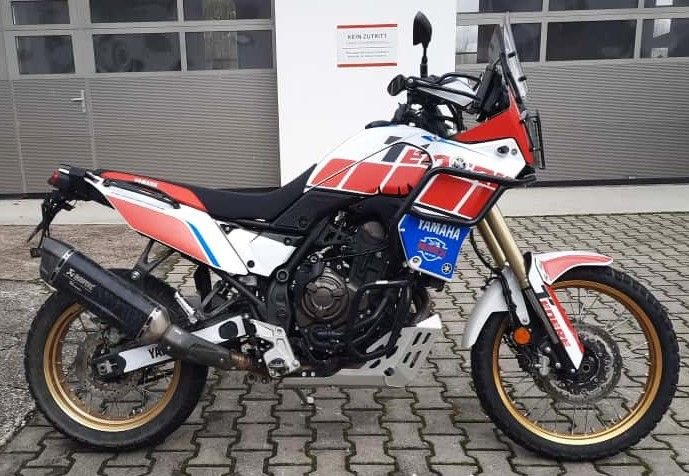 Zum Verkauf steht unsere Yamaha XTZ Tenere 700 mit Erstzulassung im Januar 2024. Das Fahrzeug aus erster Hand ist unfallfrei und befindet sich den Kilometern entsprechend in einem sehr gepflegten Zustand. Die 1.000km Inspektion als auch die 10.000km Inspektion wurde von einem Yamaha Vertragshändler durchgeführt. Auch alle Verschleißteile befinden sich in gutem Zustand. Das unten aufgelistete hochwertige Zubehör ist im Fahrzeugpreis inbegriffen. Zu unseren Geschäftszeiten können Sie das Fahrzeug besichtigen und nach vorherhiger Absprache auch Probefahren. Bei weiteren Fragen stehen wir gerne zur Verfügung.